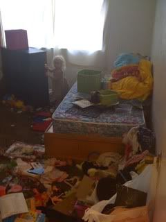 The kids would go in there and play with one of they billions of toys and when they are done it didn't have its own place to go back to, so it went on the floor, and aftera while it piled up. I have before pictures (please don't be scared) and after pictures. Their room wasn't "dirty" it was just wall to wall of toys, so I went in and organized with the kids and now when they play they know where to put that toy when they are done.